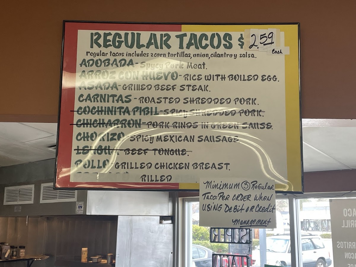 Includes 2 corn tortillas, onions, cilantro, and salsa.